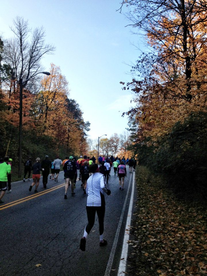 Even though I had a shuttle ticket, I decided to drive to the race. Luckily I did because it was cold in the morning so I waited in my car till about 8am (the race began at 8:30). I made my way over and got in line to the bathroom with hundreds of other people. I tried convincing myself that I did not need to go but it did not work. Finally I went and made my way to the starting line. I decided to run with a pace group that was running the full marathon. We would be running together till 12.5 miles then we would split.