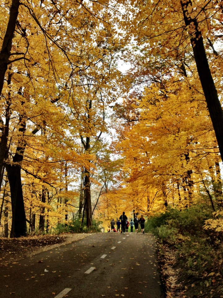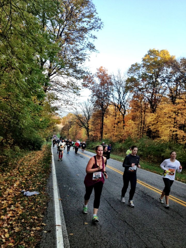 The drive was lonely and scary. It was raining and many people sure drive fast. I arrived in Indianapolis at about 4:15 pm. I quickly checked into the hotel and then went to the expo to pick up my packet. The drive there was beautiful. There were trees with leaves in various colors everywhere. There were some hills and you know we are not BFFs.