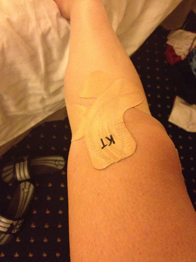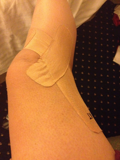 I got taped! I’ve been having some slight discomfort in my IT band so someone from KT tape helped me out.