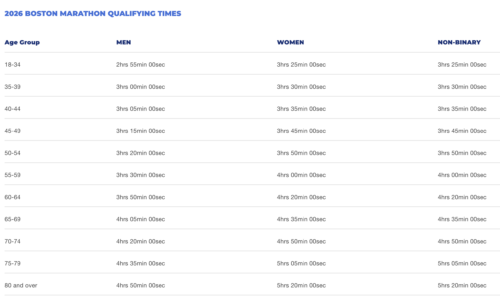 I know I will never qualify. I am not a fast runner and don’t see myself getting faster as I get older. Below are the times for the 2026 marathon. Even if I qualify, there is no guarantee that I will actually run the Boston Marathon.